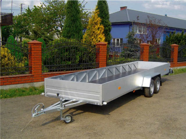 Прицеп полностью оцинкованный. Под категорию "B". Производство Польша. При необходимости дополнительно может быть укомплектован тентом. Размер прицепа 6*1,5 м. Высота под тентом внутри кузова 1,7 м. Установлены 2 оси Knott (Германия). Сцепная головка 1400 кг Knott (Германия). Рама прицепа сварная, выполнена из замкнутого оцинкованного профиля, пол выполнен из специального противоскользящего водоотталкивающего материала, борта алюминиевые — оцинкованные (alu-cynk). Очень крепкий, надежный прицеп с хорошим запасом прочности. Откидной передний задний борт, под перевозку строительных материалов, труб, металлопрофиля.
